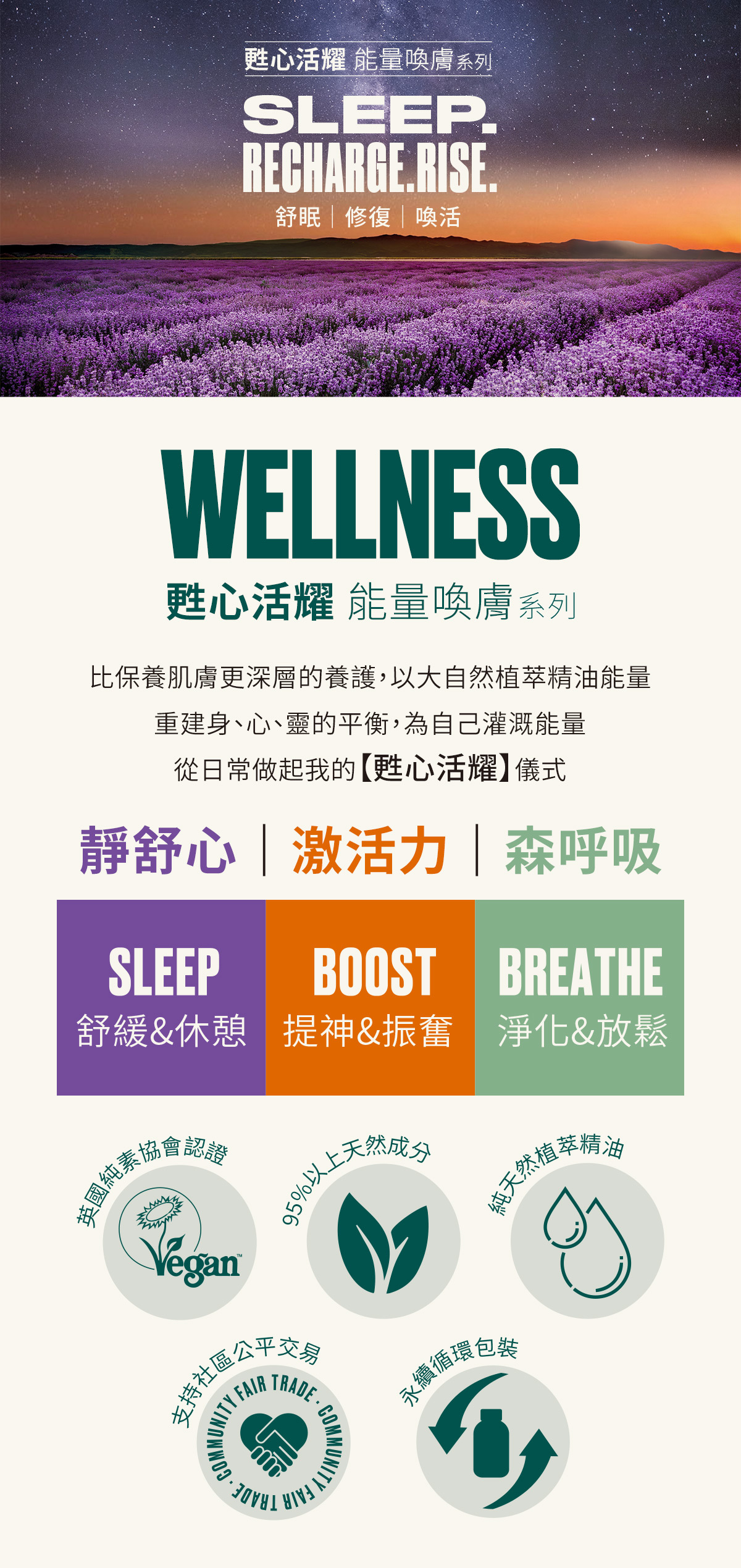 蘊含義大利佛手柑精油、柑橘精油、有機橄欖油、乳油木果油、橄欖油、芒果籽油等多種植物調和複方精華油,搭配按摩可促進吸收,使全身肌膚潤澤保濕,同時散發清新柑橘與佛手柑香氣,能有效提神振奮身心靈,散發滿滿活力能量。